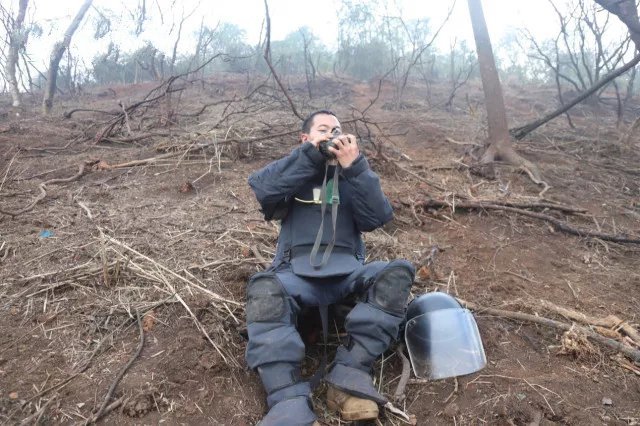 扫雷官兵在雷场附近席地而眠。翟振皓 摄 还记得南京一场大雪后 一张子弟兵睡着了的照片吗 他们头靠着椅背和衣而睡 身上还淌着泥水 其实 军人这样令人心疼又感动的 “睡姿照”还有很多 上图这张官兵“扫雷”后的 “席地而眠”照片 你见过吗? 更震撼的还在后面…… 扫雷官兵在雷场附近席地而眠。关磊 摄 扫雷官兵在雷场附近短暂休息。关磊 摄 进入深冬的中越广西边境 气温越来越低 但冬日却是扫雷作业的黄金时期 天热时穿上厚重的搜爆服作业 对扫雷官兵来说是个不小的挑战 为了能充分利用 这段“宝贵”的寒冷时间 扫雷官兵在和“死神”博弈的同时 也在和时间赛跑 6:00起床 6:30吃早饭 7:00准时出发赶往雷场 8:00之前到达雷场开始作业 16:00才收拾物资器材返回营区 他们早已习惯了 每天近10个小时的奔波和高强度作业 只希望早日终结南疆雷患 关磊 摄 为了提高搬运效率 他们背上一箱炸药的同时 肩上也再扛一箱 两箱炸药加起来有100多斤 在平地搬运都很吃力 他们却要扛着这些炸药走上山顶…… 搜排手搜排的同时 爆破手已经在准备炸药了 爆破搜排连贯起来 可以节省很多时间 但是连贯紧凑的作业 也让扫雷官兵的休息时间大大减少 穿上28斤的搜爆服 在山高坡陡的雷场来回一趟 实为不易 累的时候 他们就在原地缓上一会儿…… 雷场一般位于高山深谷中 来回一趟要花近两个小时 为了节约时间 他们就在雷场吃午饭 午饭后 扫雷官兵只有十几二十分钟的时间休息 他们就在雷场附近席地而眠 为下午的作业补充体力 再次走上雷场 他们总能打起十二分的精神 搜排出一枚地雷 百姓生活就少了一份隐患 这批“90后”称 扫雷是他们干过最有意义的事 杨浩 摄 一寸寸安全的土地 一块块除去的雷区标示碑 是他们送给祖国最好的春节礼物 自中越边境广西段 新一轮扫雷行动启动两个多月以来 这支年轻的扫雷队伍 已完成了13处雷场的深排任务 并对12处封围雷场的施工通道进行了搜排 接下来 他们将继续完成 剩余20余处雷场的深排任务 剩余的雷场面积较大 地形更加复杂 作业难度也会越来越大 心疼他们的同时也向他们致敬! 请务必保护好自己! |