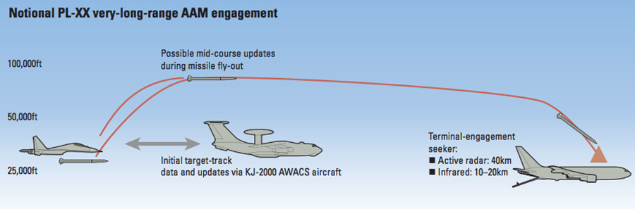图片为携带中国新一代霹雳-2X超远程空空导弹的歼-16A战斗机,据悉这种导弹的射程高达400千米以上,其射程远大于常规意义上的无源相控阵雷达的最大探测距离,甚至在大型有源相控阵火控雷达的最大探测距离附近,超远程空空导弹不可能通过传统意义上的机载雷达制导来引导导弹击中目标,也不可能像传统的主动中距空空导弹一样,仅仅依靠自己的主动雷达引导头来寻找目标,他们需要一直新的技术——空军数据链来传递目标信息。实际上,霹雳-2X超远程空空导弹发射前,歼-16A飞机将目标飞机(如敌方预警机、加油机或大型电子战飞机)的位置、方向和速度等信息传送给导弹。