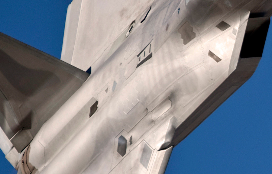 F-22战斗机机鼻附近的铆钉清晰可见。