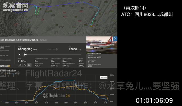 20几秒后,ATC连续呼叫8633航班,要求其连续右转飞崇州。 但此时机组已和ATC失去联系……