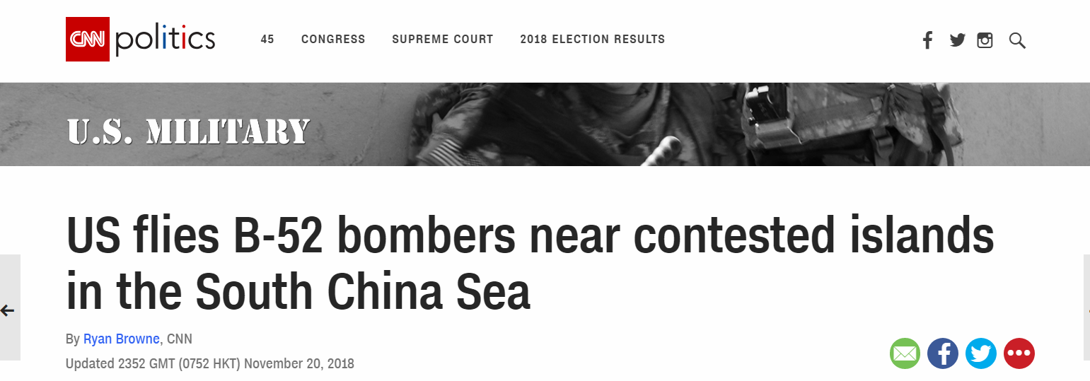 不过,CNN报道中并未提及这两架B-52飞临南海地区哪些岛屿。