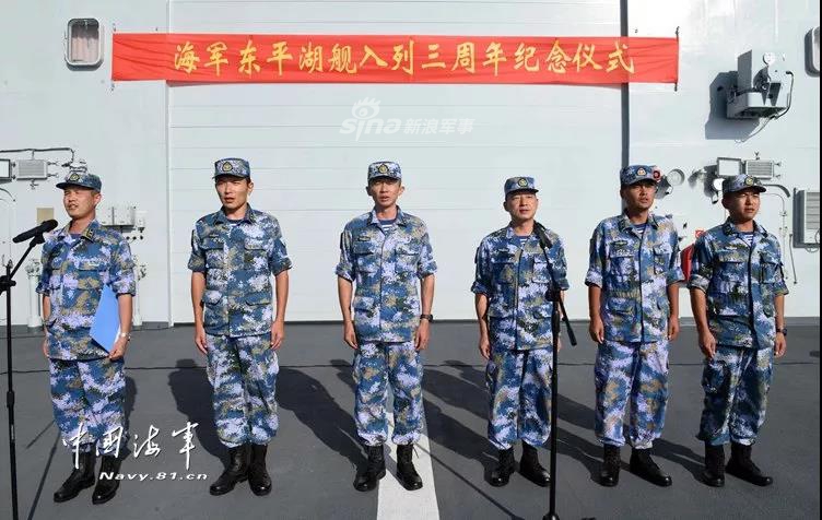当地时间12月28日,亚丁湾东部海域,晴空万里,浪花飞扬。北部战区海军某作战支援舰东平湖舰在任务途中举行入列3周年纪念大会。旨在通过这种仪式,进一步深化官兵对肩负使命的理解感悟,激励官兵在铭记历史中催生力量。(图片来源:中国海军网)