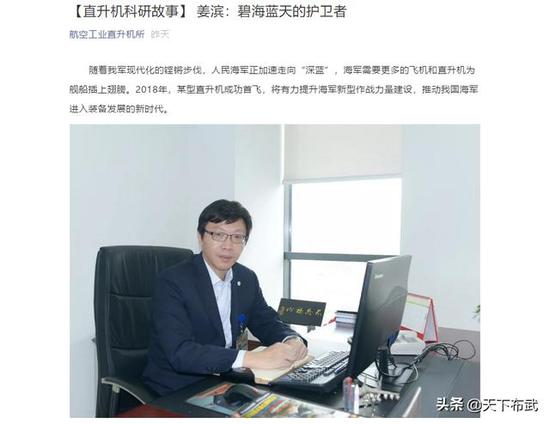 2019年1月10日,“航空工业直升机所”公号一篇题为《姜斌:碧海蓝天得守护者》的文章收到了广泛关注,众人在为某新型直升机总设计师蒋斌的事迹感动之余,也发现文中所讲的已于2018首飞的某新型直升机就是直-20海军舰载型,并且“施老”等人的解读也是如此!