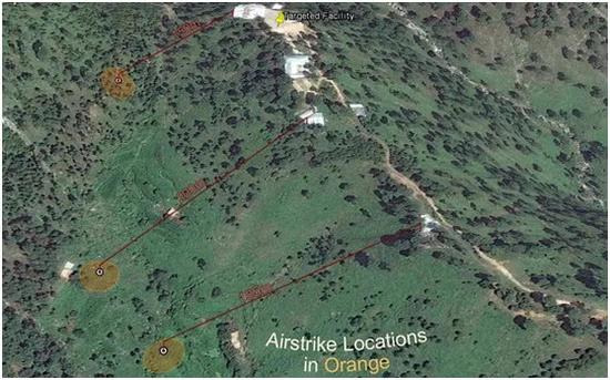 虽然”Spice2000” 高空投弹的射程指标达到60公里,这次深入巴境内,为避免被巴方雷达过早发现,载机可能采用低空进入,到达投弹区突然拉起投弹,高度应该较低,这使得射程大为降低。而且可能因为使用单座机投弹,为了减少巴境内停留时间,飞行员忙于加速脱离,无法分神进行最后锁定操作,”Spice2000”没有使用更可靠的“人在回路”的导引方式。可能由于目标图像制作或者进入角度等原因,储存的图像与导引头探测的图像有较大偏差,导致导引头无法识别出目标,炸弹只能依靠GPS制导,从落点集体平行偏移来看。印度方面似乎在目标参数位置没有对地图进行GPS纠偏(也不知道作战参谋是否直接从谷歌地图上截取的坐标)。使得炸弹越过目标落在后面的山坡上。