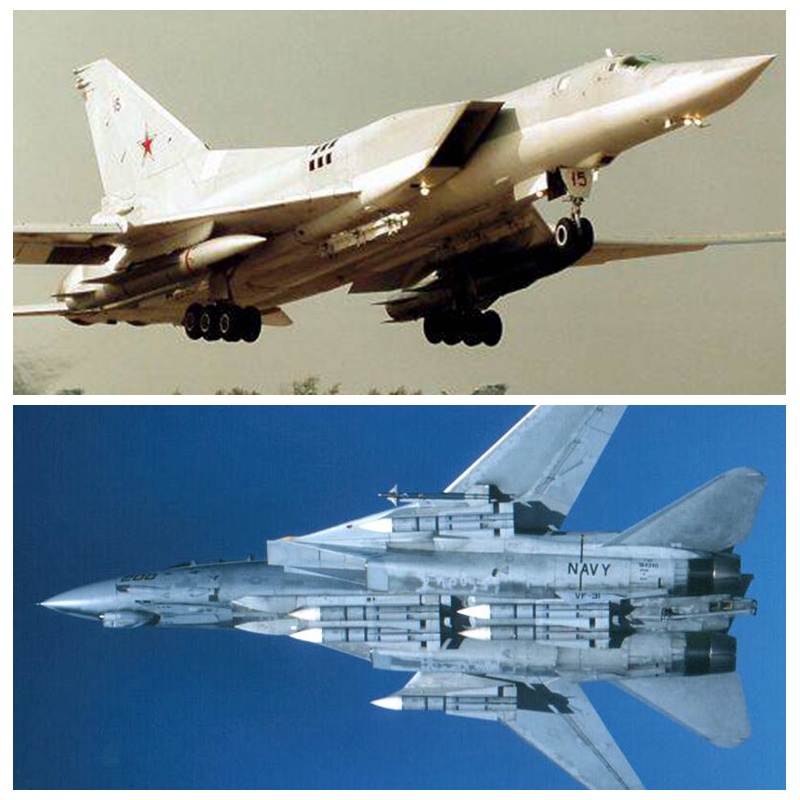 △早期Top Gun以F-5模拟米格-21,A-4模拟米格-17/19,后来也以F-16与F-14模拟苏-27、米格-29等四代机 Top Gun训练在上世纪70年代展现成果,美国海军对北越的空战交换比大幅提高,以致于北越空军专找空军麻烦而不敢招惹海军的F-4。但在越战结束后,海军的战略重心重新回到苏联头上,苏联对海军的最大威胁不是轻巧灵活的米格战机,而是作战半径超过2200公里的 “逆火”,其可在最后阶段以超音速冲刺,并在370公里外发射3马赫的Kh-22超音速反舰导弹。 虽然“逆火”的空战能力为零,但却能击沉航母并让近百架飞机跟着陪葬。F-14“雄猫”可以说就是为了对付这种威胁而生的,其可变翼与省油的涡扇发动机可让它扛着6枚900千克重的“不死鸟”导弹在280公里外巡逻1.6小时,并在AWG-9雷达引导下同时攻击90公里外的6个目标。