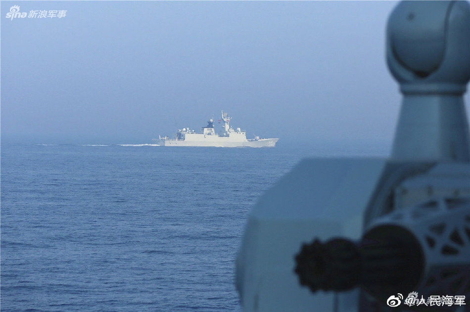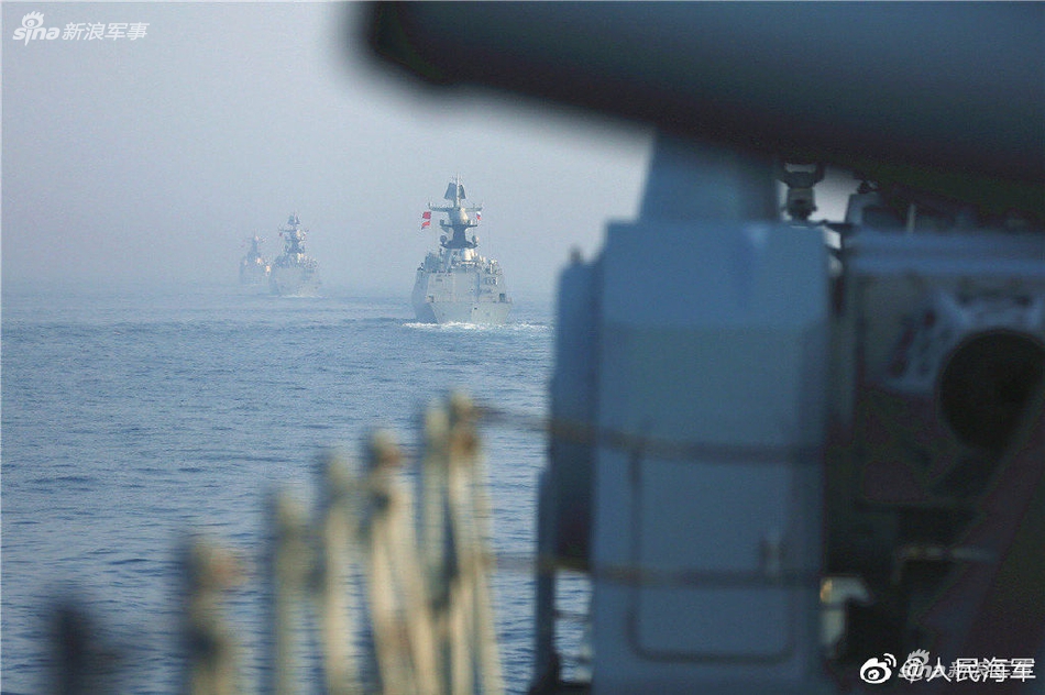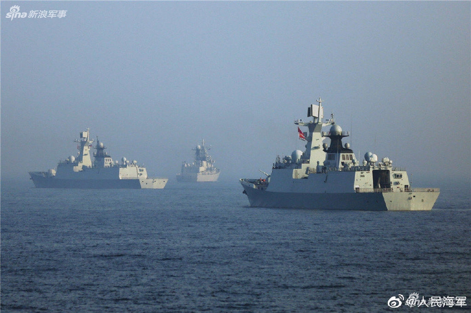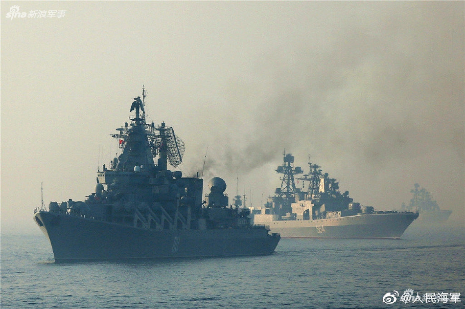 闭幕式结束后,中俄海军参演舰艇举行了海上告别仪式。