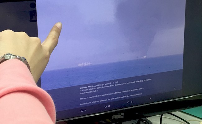〔記者黃佩君/台北報導〕美伊局勢升高影響區域情勢緊張,今傳出兩艘大型油輪在阿曼海域遭魚雷攻擊,其中有一艘Front Altair屬於中油租用,輪上載哌7.5萬噸石油腦全數遭毀,船員已棄船。伊朗媒體表示有油輪爆炸,國際油價聞訊飆升達4%。中油目前未有高層主管回應,僅表示目前正在釐清此訊息,對相關影響也在進行評估中。