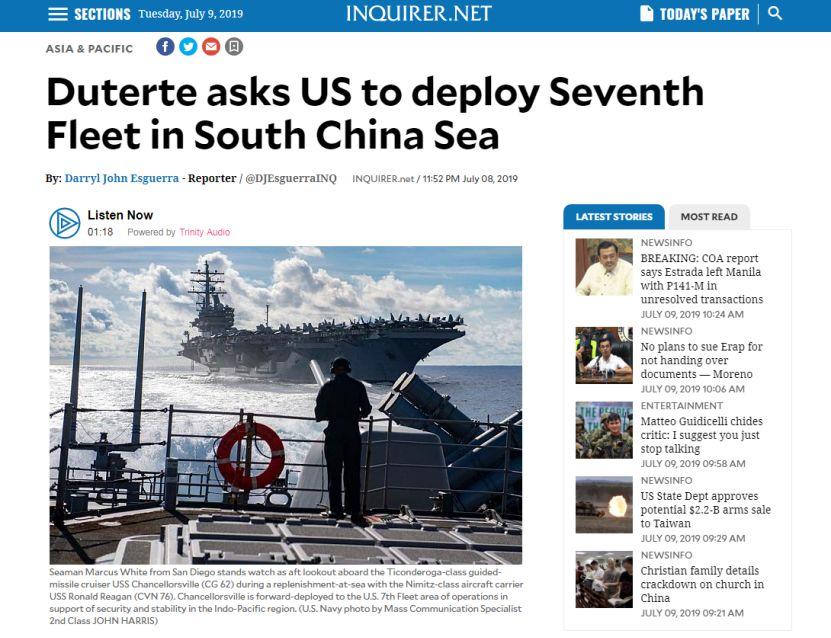| 杜特尔特暴脾气又怼美国:有种把第七舰队开进南海 zt |