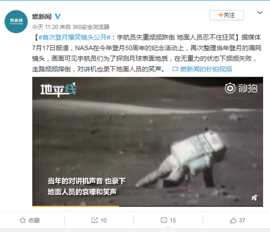| 首次登月爆笑镜头公开:宇航员失重频频跌倒 zt |
