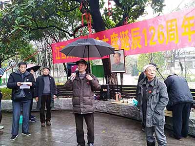 “因为要去韶山,本地的庆祝毛主席诞辰活动,只能提前到今天进行。感谢大家冒雨参与!”