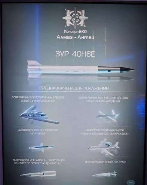 除了48N6E系列这种S-300系统的“经典配置”,这回我军从俄罗斯手里接收的S-400系统“包含了两种导弹”就很有意思了。咱们前面说过,俄军为S-400系统开始配套了三种导弹,分别是拦截距离极远的40N6弹、拦截距离很远的48N6DM弹、拦截距离较远的9M96E弹。现在9M96E/E2已经另外成了俄军野战防空的S-350系统,而咱们已经确定拿到了48N6E3,那么这“第二种导弹”无疑就是据说在前年已经完成了俄罗斯国家试验、去年正式开始批产交付的40N6E超远程弹了。 俄方宣传的40N6E超远程弹