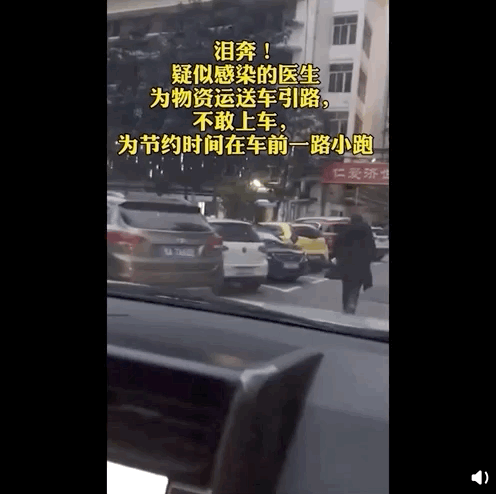 还有一位医生疑似感染,在物资运送车前方,一路小跑引路。