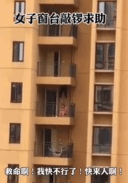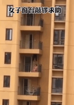 武汉有一母亲感染,因没有床位,女儿无计可施,被逼得坐在阳台上,击锣求救。