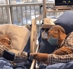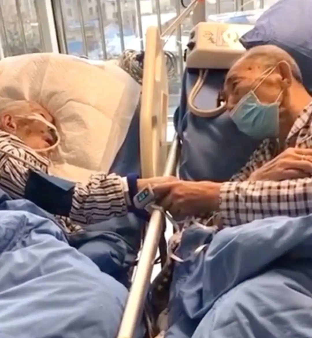 成都ICU病房,一对耄耋老人在生命的最后时刻,互相告别。