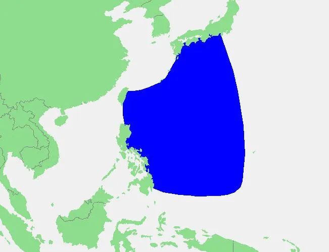 (蓝色区域为菲律宾海) 不过,菲律宾海地理范围非常大,西至菲律宾和台湾岛,北至日本,东至马里亚纳群岛,南至帕劳,是世界最大最深的边缘海。