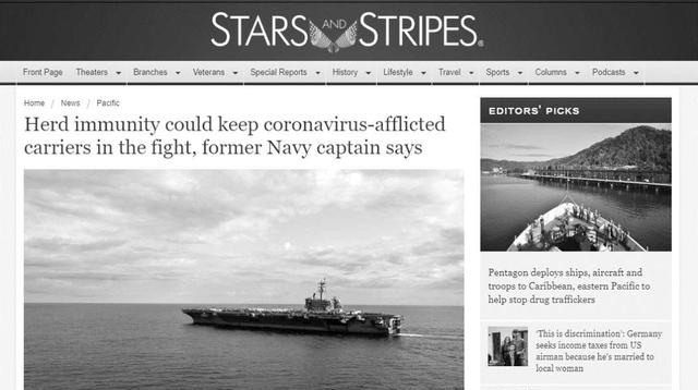 据环球时报4月4日援引美国星条旗报消息报道,美国军事专家简.范.托尔表示,为了维持在亚太地区美国军队的战斗力,建议中国周边地区的美军采取群体免疫策略。也就是让各艘军舰上的美军全部染病,最后靠他们自己的抵抗力痊愈,随后让美国海军全体都拥有对病毒的免疫能力。这位军事专家指出,美国海军中的士兵大多数都是年轻人,而年轻人对病毒的抵抗和自愈能力都比较强,因此可以实行所谓的群体免疫策略。
