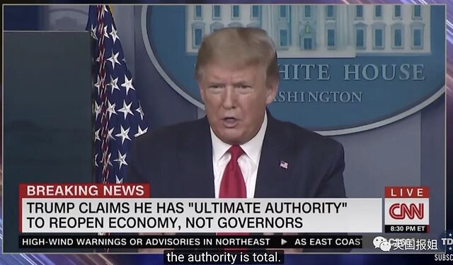 在那次新闻发布会上,还有一个大家纷争的焦点,就是川普的权力问题。 因为一开始,当各路记者责问川普为什么各州出现各种医疗物资短缺,为什么还有好多人得不到检测的时候,川普的回应都是:这是各州的问题,我们联邦政府不负责解决。而且我们已经给他们提供了很多物资了,我们本来是不用这么做的,但我还是做了,快夸我! 而后,当问到美国经济什么时候恢复正常的时候,川普又说:我们马上就要重新开放了,我一声令下,所有州都得服从。 “美国总统有美国总统的权力,很强大的权力!他们没有总统的同意什么也做不了。当有人是美国总统的时候,他的权力是无限的,就是这样的”