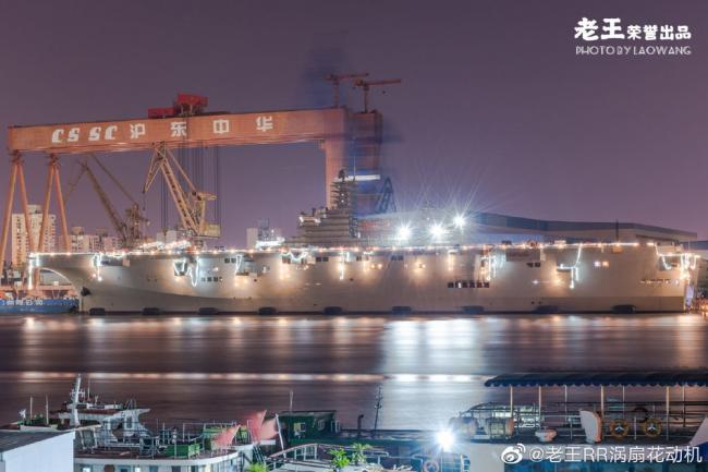 | 加班加点忙舾装!075两栖攻击舰夜中静泊灯火通明 zt |