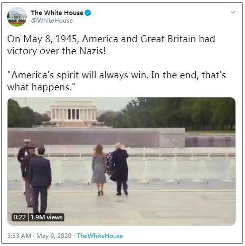 “1945年5月8日,美国与英国战胜了纳粹德国!