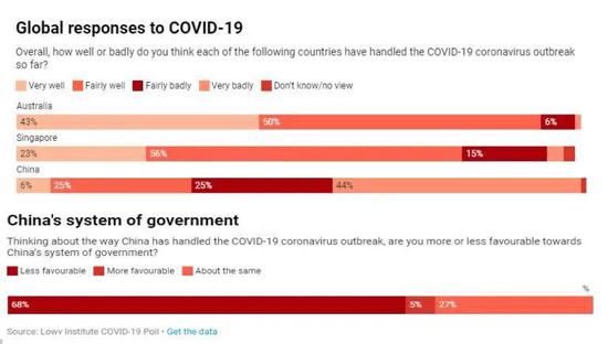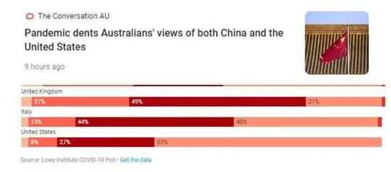 原标题:澳大利亚涉及中美两国的最新民调,太“写实”了 近日,澳大利亚的国际问题智库“罗伊研究院”推出了澳大利亚人如何看待美国、中国以及本国在疫情中表现的“民意调查”。 其结果相当“写实”。 为啥这么说呢?因为在澳大利亚早已被反华势力渗透的传媒界,在过去几年对咱们中国轮番的抹黑和妖魔化之下,澳大利亚人对咱们中国的看法负面早就见怪不怪了。 更何况在此次新冠疫情之下,澳大利亚多家媒体也没有“缺席”,不仅连篇累牍地用极具种族主义的文字侮辱中国科学家,炒作病毒来自武汉病毒所的阴谋论,更给攻击当地中国领馆的白人种族主义洗地。 ![]() 所以,如今这份对于3036名受访者的调查所给出的“近7成的人对中国在疫情中的表现没好感”,“不认同中国政治体制”的结果,并没有出乎我们的意料。 罗伊研究院负责这项民调的研究人员也承认,这一结果是近些年澳大利亚人对中国持续负面看法的延续,其中去年他们的民调就显示只有1/3的受访者信任中国。 ![]() 另一方面,这份调查显示对美国在疫情中的表现持看法负面的人超过了90%。这也令美国在6个调查涉及的国家中垫底。排名倒数第二和第三的则分别是意大利和英国。 ![]() 但这个结果也同样不令人意外。毕竟,即便抛开政治立场,美国已经接近140万人的感染数字和8万多的死亡人数,都令该国成为了世界在防疫中变现最差的国家。 报道这一民调的澳大利亚政论网站The Conversation认为,澳大利亚人对特朗普的反感也是导致美国收获最多负面评价的原因,而对于中国的负面评价高,则可能与最近中国禁止部分澳大利亚牛肉进口并要对大麦征关税有关。 但这一说法也再次证实了澳大利亚民间对于中国的看法很容易被该国媒体操控。因为尽管这两件与新冠疫情无关,澳大利亚官方自己都进行了澄清,但在澳大利亚媒体疯狂的“带节奏”下,许多澳大利亚人便也认为这是中国在“报复”澳大利亚要为新冠肺炎疫情而“调查”中国的举动了。 最后,在澳大利亚人眼中,在疫情之中表现最好的国家,是澳大利亚自己。这份在4月14日-27日进行的调查显示,仅有不到10%的认为澳大利亚表现差,其他超过9成的人都认为澳大利亚做得不错或非常好,尤其是认为澳大利亚的医疗机构和政府做得好。 ![]()