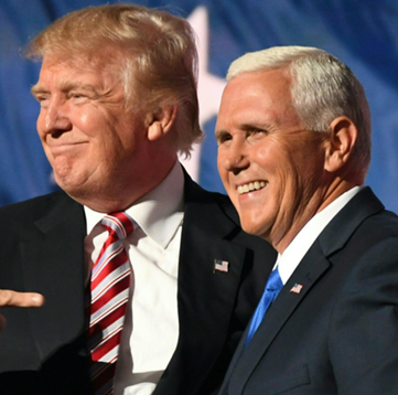 特朗普(左)和彭斯(右)(资料图) 据英国《独立报》5日报道,这条广告由彭斯于3日同步发布在自己的脸书及Instagram账号中。广告呼吁“每一位爱国的人‘加紧努力’,这样他们才可以在11月的选举中“击碎瞌睡乔试图将美国变成一个大政府主义国家的美梦。”