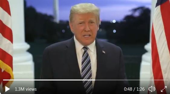 第二个视频是特朗普的一段讲话,他说自己好多了,说“我可能免疫了呢,我不知道”。他还呼吁人们“走出去”,说美国有最好的医疗,而且都是短时间内发展起来的,暗示是自己任内让美国的医疗进步了,而不是奥巴马。