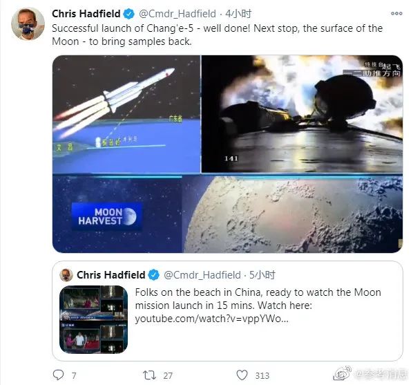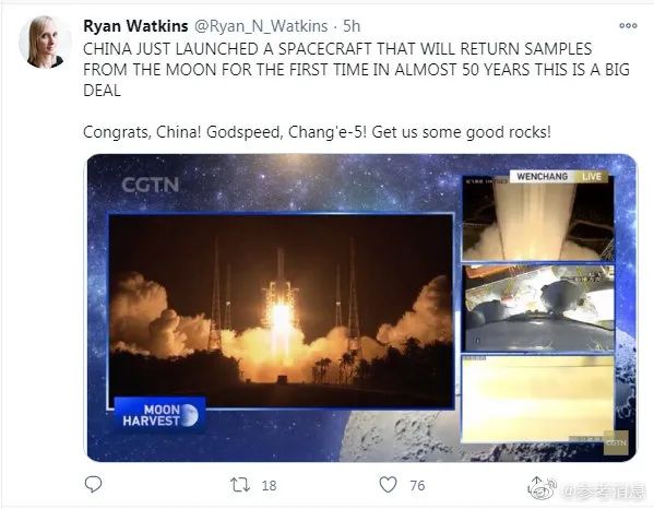 | 嫦娥五号成功发射 全球航天圈大V很兴奋 zt |