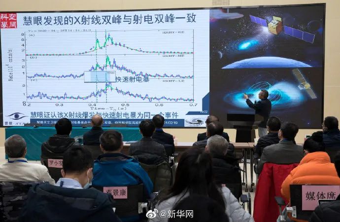 19日,中国慧眼卫星团队在京宣布,慧眼卫星发现首个跟神秘的快速射电暴相关联的X射线暴,确认其来自银河系内的磁星SGR J1935+2154,并在国际上首先证认该X射线暴包含的两个X射线脉冲是快速射电暴的高能对应体。这一发现,与国际上其它望远镜的观测一起,证明快速射电暴可以起源于磁星爆发,破解了快速射电暴的起源之谜,并为理解快速射电暴的辐射机制和磁星的爆发机制提供了至关重要的数据。