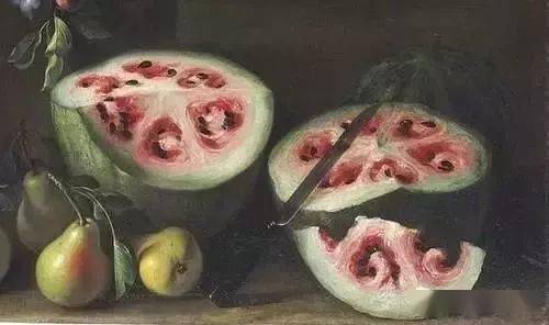 这是出自意大利静物画家Giovanni Stanchi,画下17世纪中期西瓜的模样 NO.2 猜猜这又是什么水果呢?