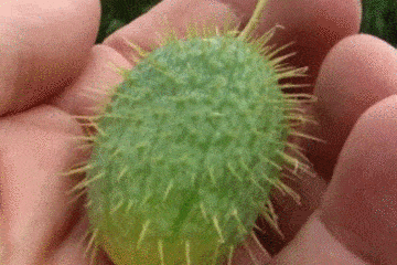 What? 这个居然是黄瓜?真正的顶花带刺 最早的野生黄瓜不仅满身长刺,里面的核非常大,还有人认为它有毒,基本不能吃。在公元前2000到公元前3000年,多亏了当时的印度文明,他们把黄瓜当成一种药材来培育,后来才逐渐变成一种蔬菜。