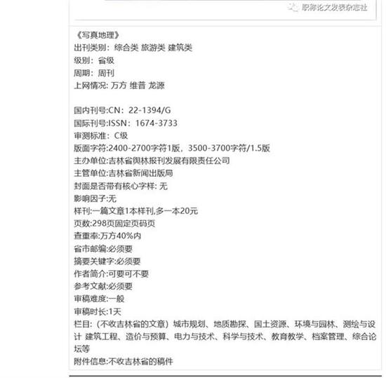 极目新闻记者调查发现,《写真地理》杂志年产论文1.5万余篇,版面费低至650元,绝大部分论文都只有一页。