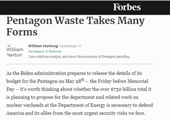 美媒:美军费超中国3倍却浪费严重 买了一堆没用武器作者署名:笑天 ![]() 据美国媒体《福布斯》网站报道,拜登政府准备在5月28日公布五角大楼预算的细节,值得思考的是,这项总额7500多亿美元的军费预算是否能有效保卫美国及其盟友,免受我们面临的最紧迫的安全威胁。 正如美国参议院预算委员会主席伯尼·桑德斯在听证会上所强调的那样,我们早就应该认真考虑一下巨大的浪费和成本超支,数十年来,欺诈和财务管理不善一直困扰着美国国防部和军工企业。 那么这些浪费都包括什么项目呢?五角大楼主要有四种浪费的情况——错误的战略,购买无效和不必要的武器系统,基本项目之处太多,以及多余的开销项目。 首先从战略方面看,美国错误的防务战略忽视了我们面临的最紧迫的安全挑战,浪费了几百亿甚至几千亿美元,同时又使我们的安全性降低了。人类命运目前和未来都长期面临最大威胁是流行病、气候变化、核武器、白人至上主义以及种族主义,和贫富差距问题。而应对这些挑战所需要的主要并不是军事手段。 但美国的军费预算实在是太高了。国际政策中心的可持续防务特别工作组制定了一项计划,将外交放在了首位,以更现实的眼光看待俄罗斯和中国带来的挑战。避免不必要的、适得其反的伊拉克和阿富汗式战争,只保留足够的核威慑力量,削减过于庞大的官僚机构,这些措施可以在未来10年节省1.2万亿美元。即使削减了这些项目的开支,美国也仍然是军费预算最高的国家,超过中国军费3倍,是俄罗斯军费的10倍。 第二个浪费的领域是在武器装备上,这些武器要么无法使用,要么负担不起,要么没有必要,而在某些时候,这三种情况还会发生在同一款武器上。 ![]() F-35战斗机就是一个很好的例子,该机是五角大楼有史以来最昂贵的武器项目。但是经过20年的发展,该机还没有完全做好实战准备,而且可能永远也不会。此外F-35的购买、使用和维护成本都极高。据报道,该机每年的成本将比目前空军的预估高出数十亿美元,到了2030年,可能有近一半的机队因发动机无法正常工作而停飞。该机在使用寿命期内耗资将高达1.7万亿美元,这是一个很可观的数字。现在应该暂停F-35的生产工作,直到该机被证明是有效的、能负担得起的,如果不能满足这些要求,F-35项目就应该终止。 另一款武器就是新型洲际弹道导弹,其正式称为“陆基战略威慑系统”(GBSD)。美国前国防部长威廉·佩里称洲际弹道导弹是“世界上最危险的武器之一”,因为总统只有几分钟的时间来决定是否在收到攻击警告时发射洲际导弹,这极大的增加了由错误警报而引发的意外核大战的风险。美国完全可以在不建造新的洲际导弹的情况下维持强大的核威慑力量。 第三个浪费的领域是承包商的价格欺诈。一个极端的例子就是Transdigm公司,该公司从提供给五角大楼的零部件中获利超过4000%。而这种暴利已是家常便饭,美国军方每年都要花费数十亿美元。政府监督项目提出了一系列改革建议,以遏制承包商在向政府提供零部件方面的浪费和牟取暴利行为。 最后一个浪费的领域,就是多余的开销问题。这些多余的支出首先来自五角大楼雇佣的60多万名私人承包商。这些承包商中的许多人所做的工作完全可以由文职政府雇员来完成,而且成本还要低得多。如果将私人承包商的开支削减15%,这样每年就可以节省260亿美元。 另一个多余的开销是给主要武器承包商的 。总的来说,美国军费预算的很大一部分都用来购买武器。在2020财年,仅排名前五的军火公司就从五角大楼获得了超过1500亿美元的合同,超过国防部支出的五分之一。洛克希德·马丁公司是迄今为止最大的军火商,去年盈利80亿美元。其首席执行官的收入超过2000万美元,是刚入伍的新兵收入的500倍。如果我们想节省五角大楼的开支,我们就需要削减这些项目。对承包商的报酬、利润和管理费用进行独立调查将是控制成本的有用工具。 五角大楼的浪费对任何人都没有好处,也无助于加强美国的国家安全。在美国国会签字同意投入总额大约25万亿美元的财政预算之前,它应该认真研究一下这些浪费问题,并相应地削减预算。 |