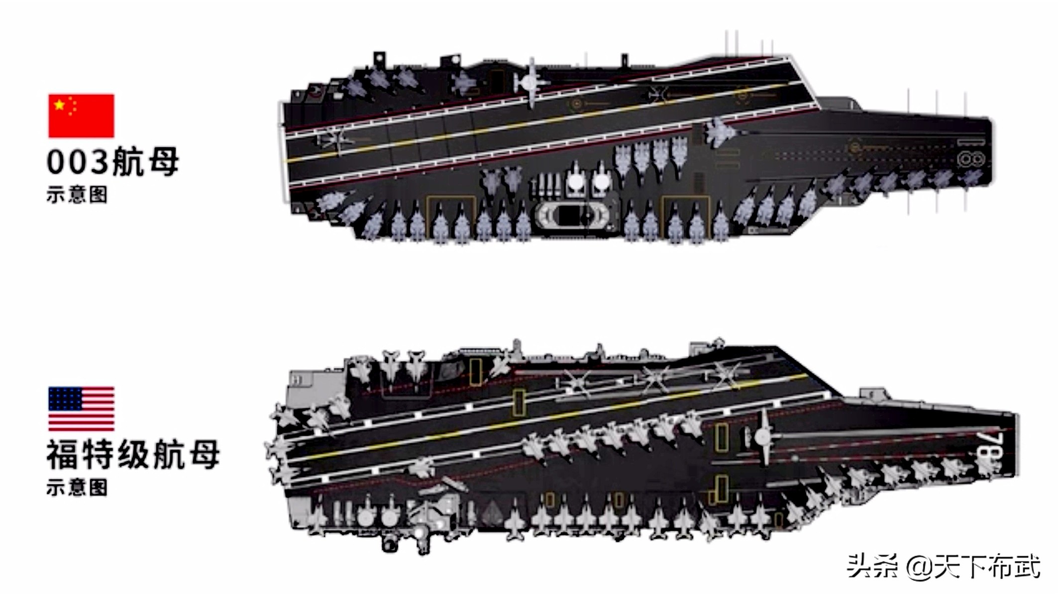 | 003与全球主流航母的对比图,真的是一口气超过了全球绝大多数航母 zt |
