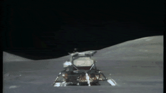 这两个动图应该很清楚能看到阿波罗飞船是怎么飞离“发射台”了,它将下降段作为发射台,直接起飞,抛弃了登月后无用的下降段死重,还顺便从这个平稳的台子上起飞,一举两得!