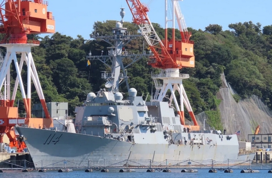近日,公开照片显示,驻日美军伯克级驱逐舰拉尔夫约翰逊号(DDG-114)换用新式低可视度舷号。从图片可见,样式与老式舷号存在明显差异。