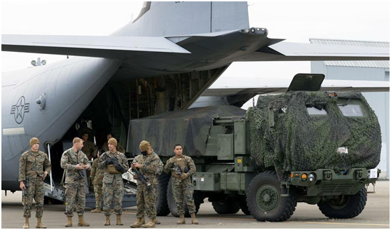 在这场训练中,美军首次与自卫队演练了空运高机动性火箭系统“海马斯”(HIMARS)。“海马斯”是一种可被装入运输机的先进发射装置,能瞄准数百公里以外的目标。