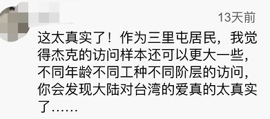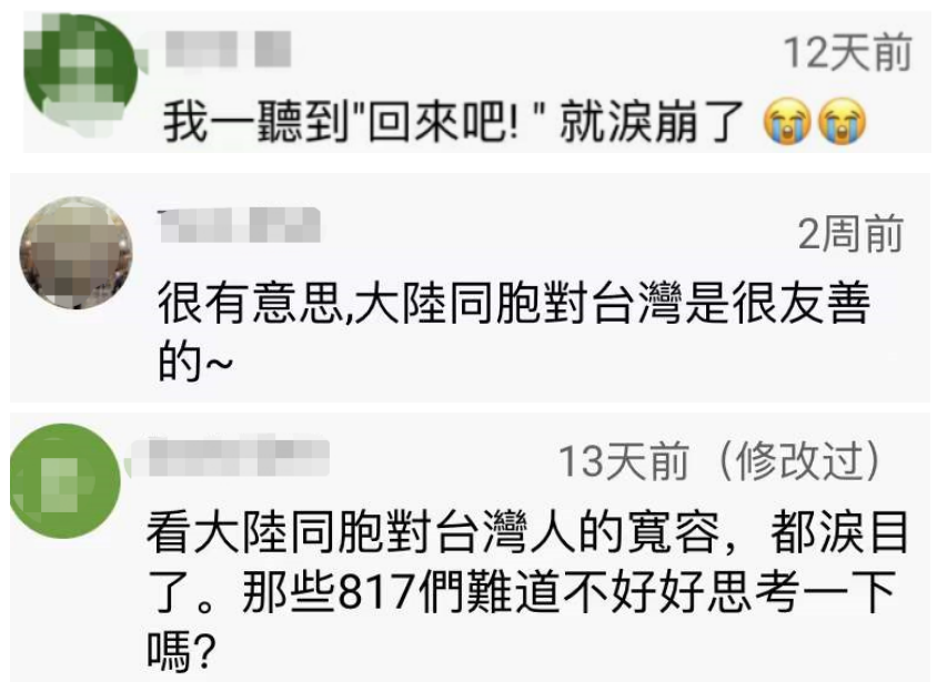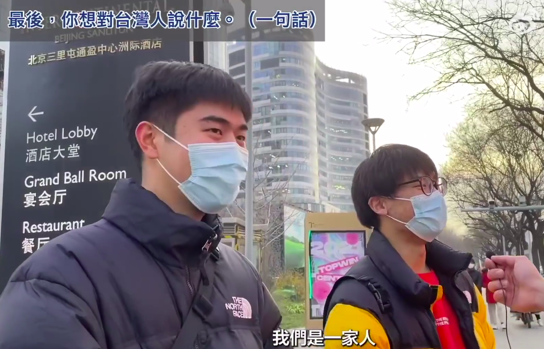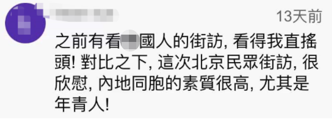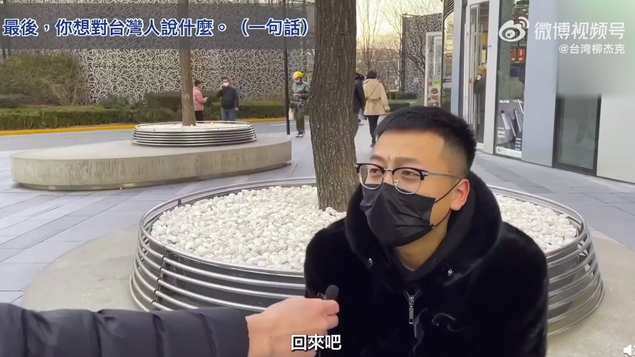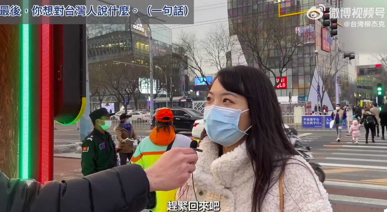 绿媒惊了:台湾人北京街访 不少人都在喊“回来吧”原标题:台湾人北京街访,不少人喊“回来吧”,绿媒惊:怎么大家说的话都一样 [环球网报道 记者赵友平]“回来吧”,“赶紧回来吧”,“我们是一家人”。经常拍摄政治、时事议题的台湾视频博主“我是柳杰克”近日在北京三里屯街访,当他请北京居民对台湾人说一句话时,大部分人都说出这样的话。 这段街访视频在Youtube发布后传回岛内,台湾省绿媒“三立新闻网”今日(8日)有点“惊”:“怎么大家说的话都一模模一样样”。 台湾“三立新闻网”脸书截图绿媒“三立新闻网”今日在题为“街访北京民众对台湾看法 向台人喊一句话竟全秒回:回来吧”的报道中称,“我是柳杰克”近日前往北京街头采访当地民众对于台湾有什么看法,其中包括“说到台湾,你想到什么”,“1到10分给台湾打几分”,以及“觉得台湾人是不是同胞”等问题;而当柳杰克请北京民众对台湾人说一句话时,大部分民众竟然都表示“回来吧”,让不少网友看完后直呼“太巧了吧”、“怎么都说差不多的话”、“街访质量很高”。 视频博主“我是柳杰克”记者发现,这段街采视频最早由视频博主“我是柳杰克”2021年12月25日发布在他的YouTube账号上,2022年1月4日,他还把这段视频发在了自己的微博账号@台湾柳杰克 上,同时发文说自己来到了传说中的“潮流圣地”三里屯,问民众对于台湾问题的看法,“果不其然,人‘潮’,回答也‘潮’!”他说,有位关注台湾问题的“潮流”大衣哥妙语连珠,让他“十分敬佩”。↓ @台湾柳杰克 微博截图记者观看视频发现,视频博主“我是柳杰克”在三里屯采访了七八组北京居民,在“说到台湾,你想到什么”的问题,不少人想到的是周杰伦、台湾小吃,还有人想到的是“宝岛”、“台湾一家亲”、“都是一家人”。↓ ![]() ![]() 对于台湾的喜欢程度,不少人给出高分。↓ ![]() 在回答“觉得台湾人是不是同胞时”,有人说:“必然是同胞”、“肯定是一家人”。↓ ![]() ![]() ![]() “我是柳杰克”请北京居民对台湾人说一句话时,有人祝他们新年快乐,还有不少人脱口而出:“回来吧”、“赶紧回来吧”。↓ ![]() ![]() ![]() ![]() ![]() 不少台湾网友在Youtube上这段视频下留言,称感受到大陆民众的友善。 有人说:“谢谢你们,亲爱的大陆同胞们。”有大陆网友回复说:“都是自己人,一家人!这么客气干嘛。”↓ ![]() 有岛内网友说,一听到“回来吧”就泪崩了,还有人说“大陆同胞对台湾是很友善的”。↓ ![]() 有人说自己是出租车司机,“不管如何,我们是一家人”,每次载到大陆同胞都倍感亲切,那是打从心里的高兴。↓ ![]() 也有岛内网友说,这次北京居民的街访显示大陆同胞的素质很高。↓ ![]() 也有自称是北京三里屯居民的大陆网友留言称,街采视频太真实了,觉得柳杰克的访问样本还可以更大一些,通过对不同工种、不同阶层的访问,“你会发现大陆对台湾的爱真的太真实了。”↓ ![]() ![]() |