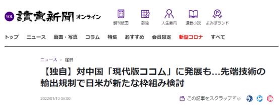 据日本《读卖新闻》1月10日报道,多名消息人士透露,日美两国政府正在探讨建立新的高端科技出口管制跨国机制,也考虑让有意愿的欧洲国家加入。该报道还特别指出,该机制针对中国。