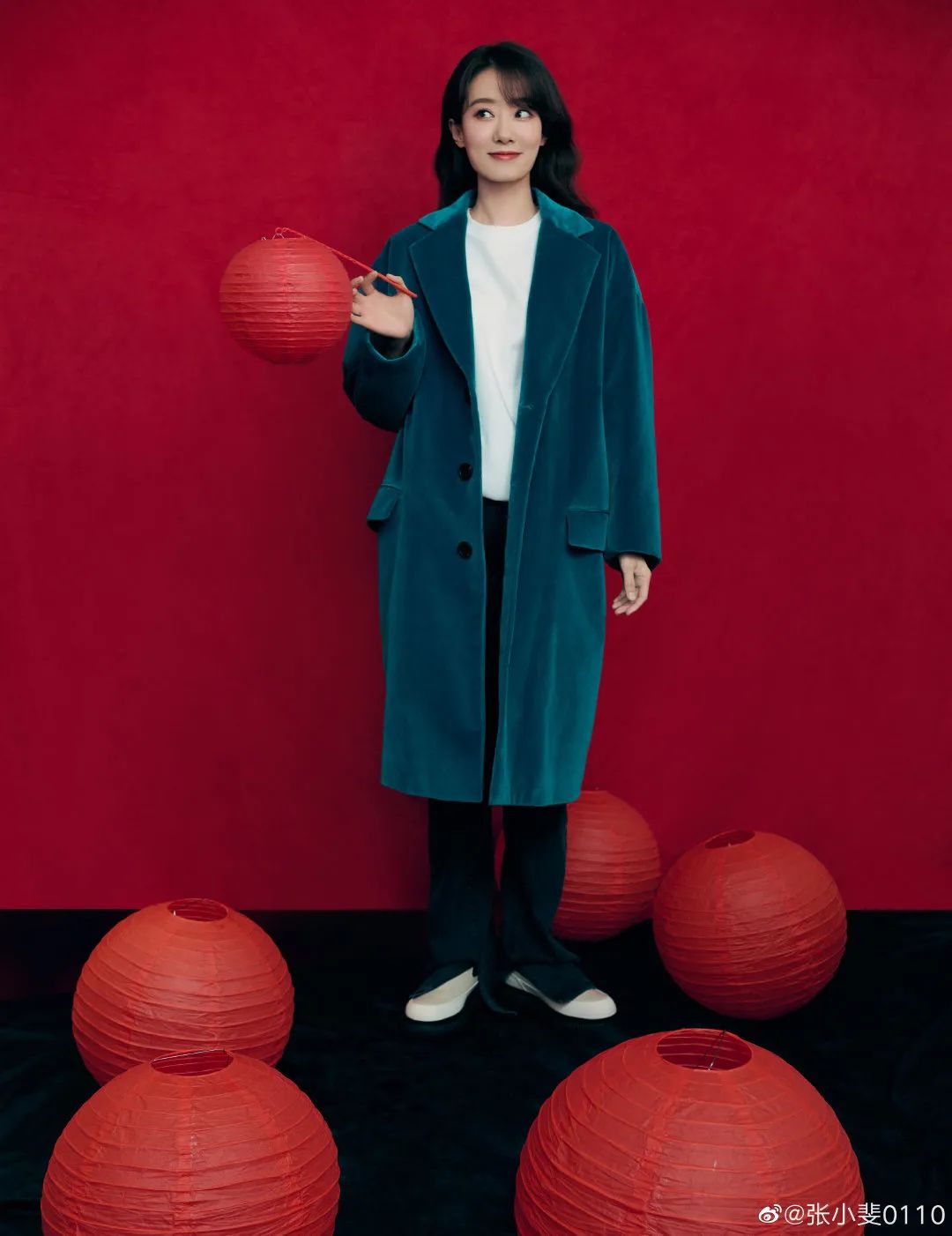 张小斐再次和贾玲搭档演母女,她的 Lanvin 绿色大衣一出场就上了热搜,丝绒面料和 Oversized 的版型,复古又有别样的喜气。