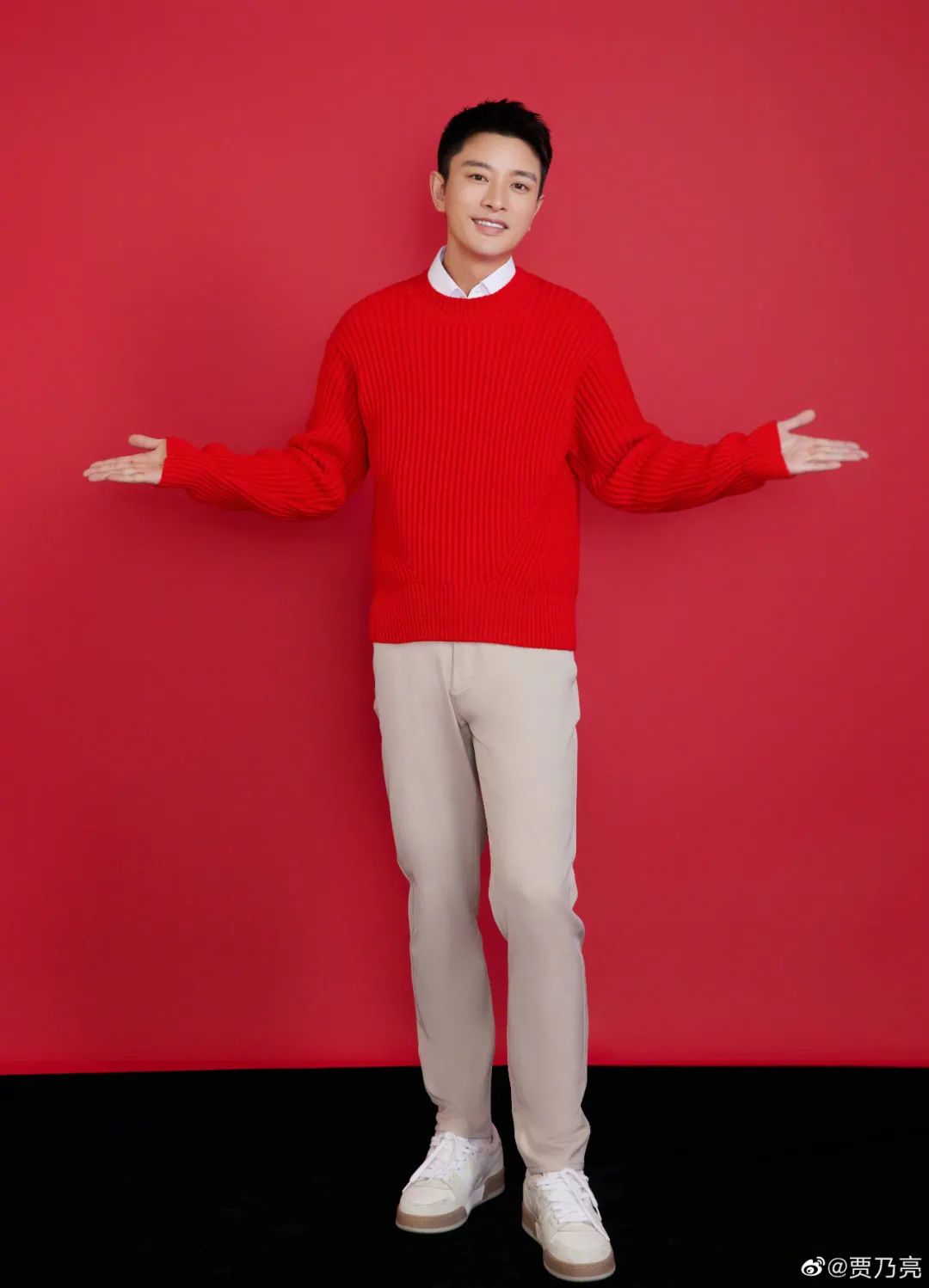 贾乃亮的基础款红色毛衣,来自法国品牌 ami,是衣橱里每年都能拿出来穿的“过年基础款”。