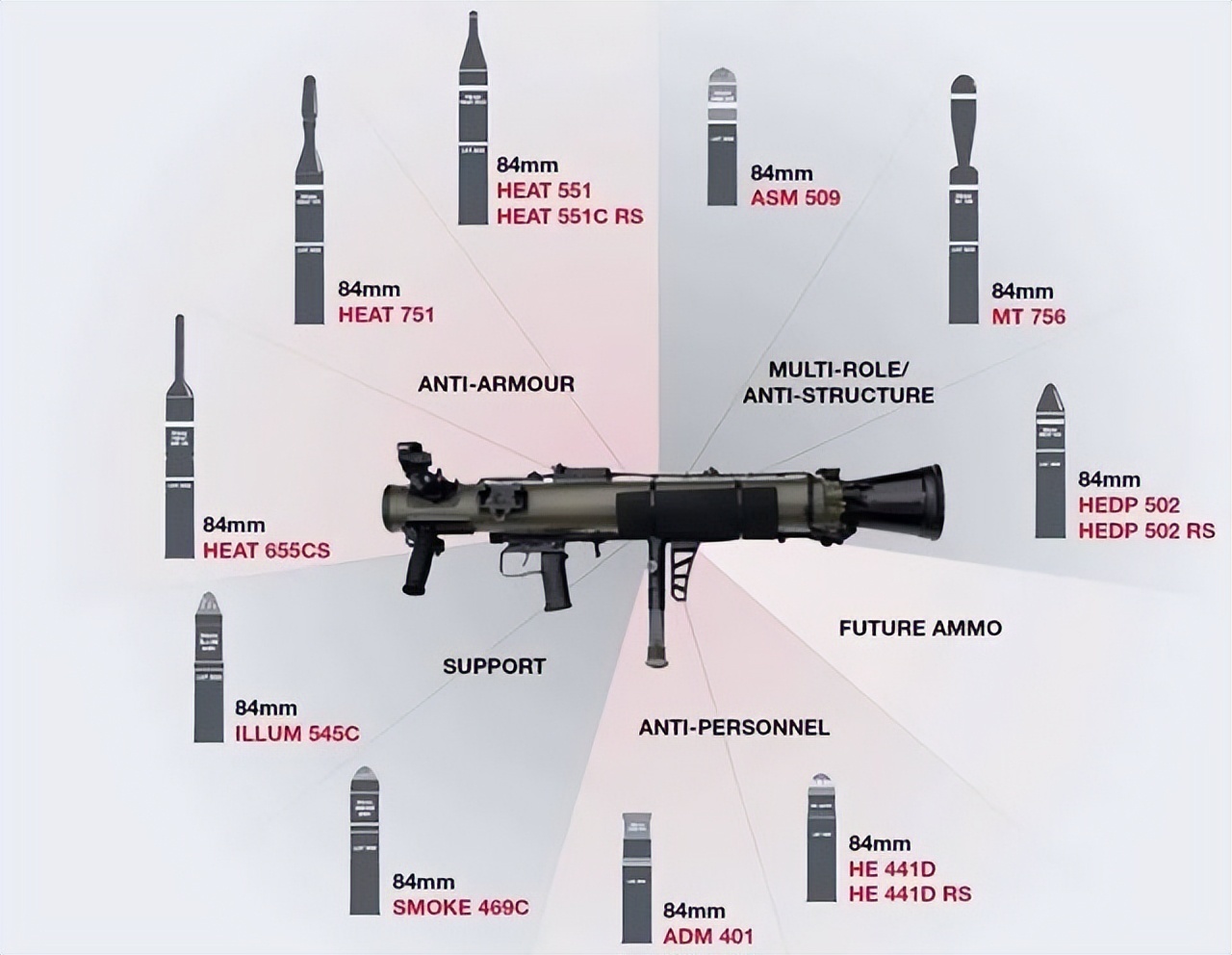 先不说主动防御系统,但就是反应装甲的大规模普及对采用聚能装药原理的单兵反坦克武器构成了很大挑战,老坦克加上一层反应装甲就能比较好的抵挡火箭筒的攻击 所以很早以前就有人提出用类似瑞典古斯塔夫无后坐力炮,专门攻坚,反坦克任务交给红箭系列就行。