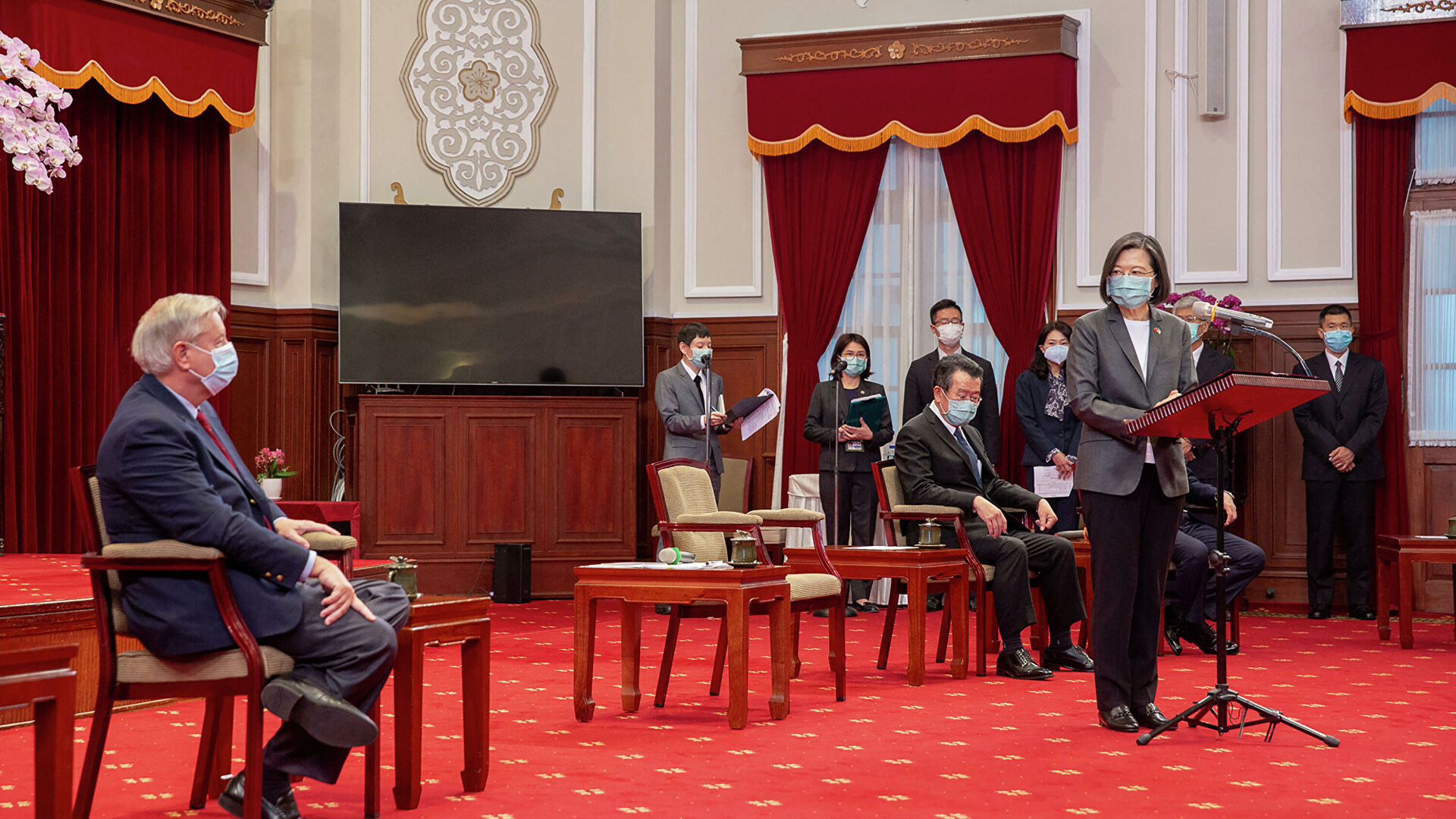 俄罗斯卫星通讯社说,美国参议员访问台湾,导致中国大陆在东海和台湾岛附近举行了多目标军事巡逻和海空演习。解放军动用了军舰、轰炸机、歼击机和其它力量。