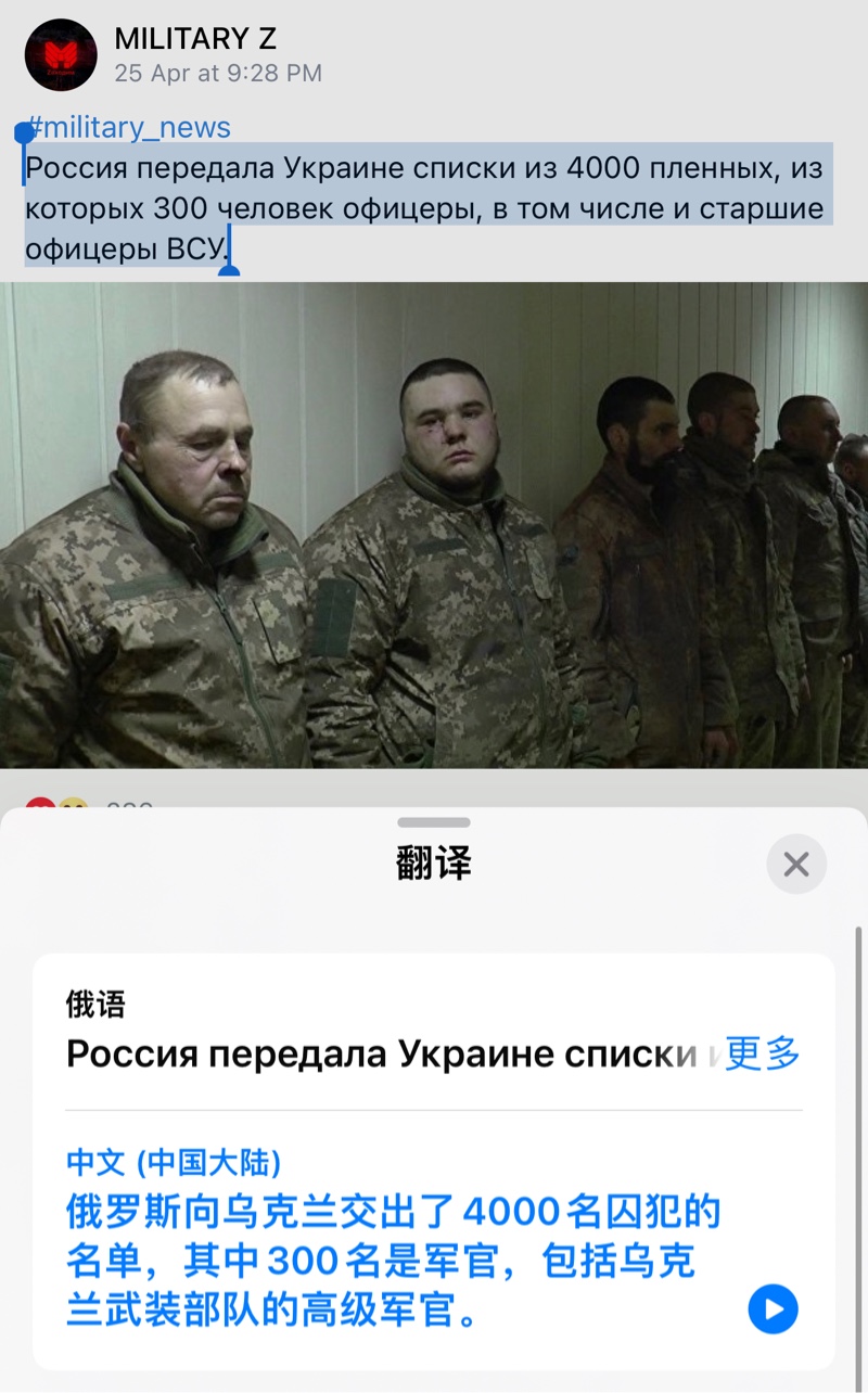 | 俄罗斯向乌克兰移交了4000名战俘的名单,其中包括300名乌克兰军官 zt |
