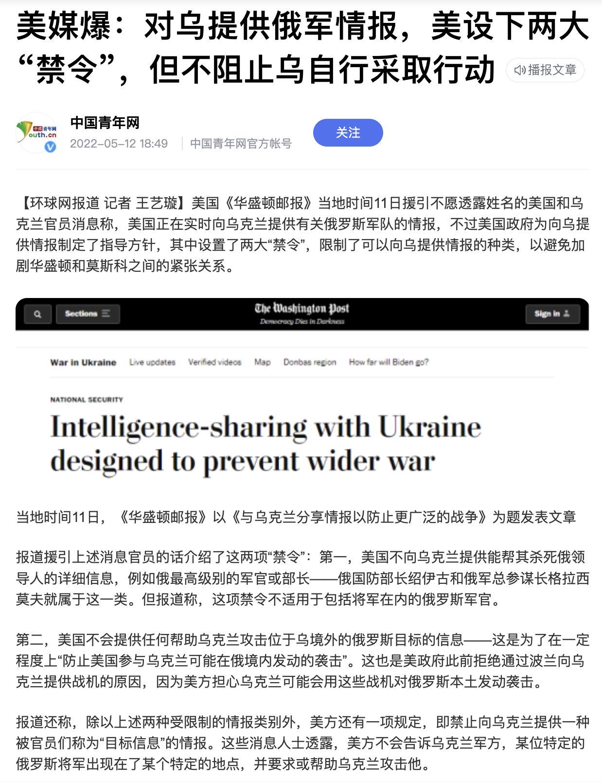 乌克兰此前在战争中多次准确掌握了俄军的动向,很多人就怀疑是美国在帮助乌克兰获得情报,果不其然,美国的媒体也报道了这件事。