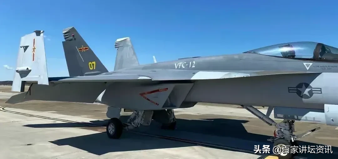 在这几幅照片中我们可以明显看出来,美军F18战机涂上八一军徽,而且还专门为战斗机刷上歼11/15的伪装!