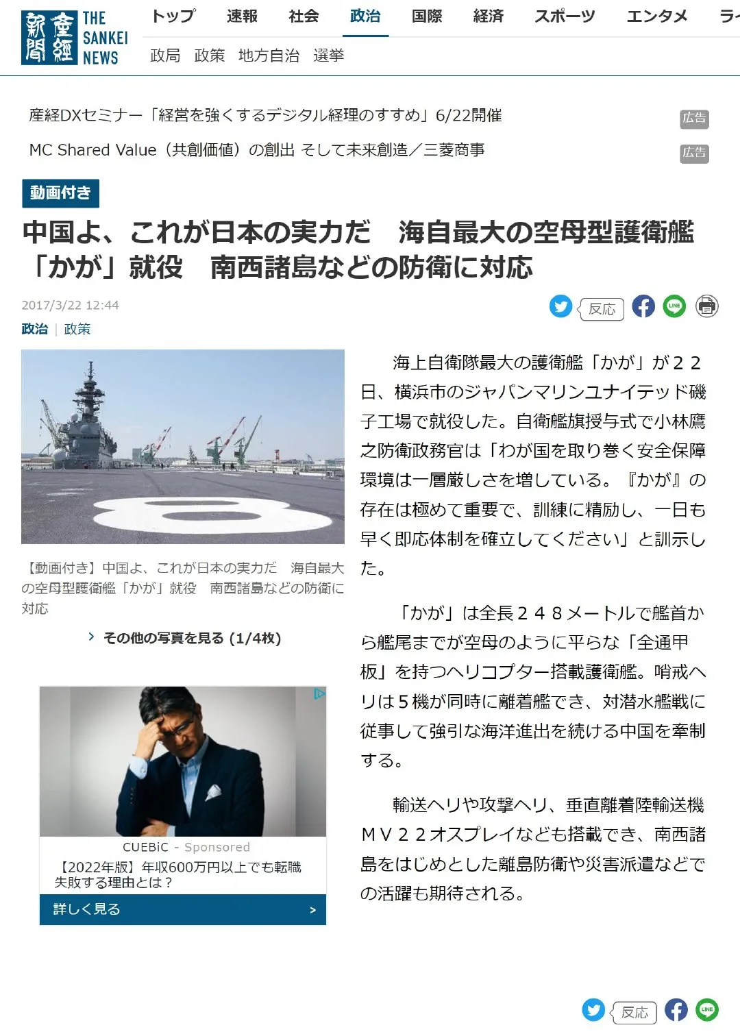 全世界都在聚焦“福建号”航母的下水,世界强国都震动很大,特别是100多年来我们的海上劲敌日本,第一时间做了报道,对于崇拜力量的日本来说看到“福建号”也是五味杂陈,很显然中日海上力量对比出现了不可逆转的倾斜!