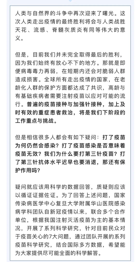 张文宏团队最新发声:走出疫情的前景越来越清晰!成都亮码扫码即可进入公共场所!一起看看疫情的最新情况。 华山感染微信号消息,12月1日,国家传染病医学中心复旦大学附属华山医院张文宏教授团队发文称“走出疫情的前景越来越清晰”。 成都卫健委官微12月1日发文称,成都将科学有序开展核酸检测。另外提到进入公共场所的最新查验要求:进入医疗机构,需按医疗机构规定出示核酸阴性证明。主动出示健康码绿码,测体温、扫场所码,即可进入其他公共场所及乘坐公交、地铁等市内公共交通工具。 @成都地铁 微博12月2日消息,根据最新疫情防控要求,自2022年12月2日起,市民乘客进站时请主动扫场所码,过闸前主动出示健康码,凭绿码通行,乘坐地铁请全程佩戴好口罩,感谢您的支持与配合。当前正值秋冬之季,请乘客做好个人防护。 ![]() 华山医院张文宏团队最新发声: 走出疫情的前景越来越清晰 据华山感染微信号消息,12月1日,国家传染病医学中心复旦大学附属华山医院张文宏教授团队发文,针对目前民众对于疫苗关心的7大问题,通过团队开展的系列疫苗科学研究,结合国际多方数据,为大家提供尽可能全面的科学解答。并称“走出疫情的前景越来越清晰”。 文章称,科学的数据已经呈现在我们眼前,疫苗的广泛接种一定是构建群体免疫屏障的最重要组成部分。特别是疫苗对脆弱人群的保护,将是我们降低医疗挤兑、战胜这场疫情的关键。 当然,除了疫苗之外,我们还需要对疫情实施控制,避免短期疫情暴发失控,老年人在这段时间要加倍注意保护自己,要加强在公众场所的自我保护,养老院需要提前做好保护的准备,医疗资源则必须为老年人与脆弱人群提早做好准备,以应对我们将要面对的挑战。 我们希望走出疫情,我们更希望老年人等脆弱人群和年轻人一起走出疫情,我们才算真正赢得了这场胜利。 ![]() 以下是全文: ![]() ![]() ![]() ![]() ![]() ![]() ![]() ![]() ![]() ![]() ![]() ![]() ![]() ![]() ![]() 成都科学有序开展核酸检测 亮码扫码即可进入公共场所 成都卫健委官微12月1日晚发文称,目前,成都市在疫情防控中坚持国家防控方案第九版、落实二十条优化措施,采取更为科学精准的防控手段,在最大程度保护人民生命安全和身体健康的基础上,最大限度减少疫情对经济社会发展的影响。 就此,记者梳理市民最近关注的核酸检测、查验核酸证明、密接人员管理等热点问题,请相关市级部门进行解答。 1、问:市民进入公共场所的最新查验要求是什么? 答:按照国家防控方案第九版和二十条优化措施要求,对风险岗位、重点人员开展核酸检测,不得扩大核酸检测范围。设立便民核酸采样点,继续为风险岗位人群、重点人员、进入医疗机构的人员、来(返)蓉人员等有核酸检测需求的市民提供免费核酸混检服务。 进入医疗机构,需按医疗机构规定出示核酸阴性证明。主动出示健康码绿码,测体温、扫场所码,即可进入其他公共场所及乘坐公交、地铁等市内公共交通工具。 2、问:目前我市对密接人员如何管理? 答:密切接触者应落实集中隔离观察,但符合居家隔离条件的,可实施居家隔离。 居家隔离最好单独居住,若条件不允许,选择房屋内通风较好的一个独立房间作为隔离室;在隔离室外放置桌凳,用于无接触式交接物品;房屋内不使用集中(中央)空调,隔离人员使用单独卫生间,避免与其他同住人员共用。 3、问:哪些重点人群仍要进行定期核酸监测? 答:由于重点人群社会面活动广,感染和传播风险更高,因此需要定期进行核酸监测。当前,我市对重点人群核酸监测的具体要求是: 对与入境人员、物品、环境直接接触的人员、集中隔离场所工作人员,各级各类医疗机构工作人员等每天开展一次核酸检测。 对从业环境人员密集、接触人员频繁、流动性强的从业人员(如快递、外卖、酒店服务、装修装卸服务、交通运输服务、商场超市和农(集)贸市场工作人员等)、口岸管理服务人员等每周开展两次核酸检测。 学校和托幼机构、养老机构、儿童福利领域服务机构、精神专科医院、培训机构等重点机构人员按照每天20%的抽样比例开展核酸检测。 4、问:对老年人接种疫苗有何建议? 答:临床数据显示,老年人感染新冠病毒后,导致重症和死亡的比例在所有人群及各个年龄段中最高。接种了疫苗的老年人,可显著降低发生重症和死亡的风险。 专家建议没有禁忌症、符合接种条件的60岁以上老年人群,尤其是80岁以上的高龄老年人群,应当尽快接种新冠病毒疫苗,符合加强接种条件的要尽快完成加强接种。 下一步,我市将优化预防接种服务,通过设立老年人绿色通道、临时接种点、流动接种车、上门接种等措施,最大限度为老年人提供便利。 这里要特别提醒广大市民朋友,优化防控措施并不意味着放松疫情防控,而是为了进一步提升防控的科学性、精准性、有效性。 面对当前疫情形势,我们将做到该管住的重点风险要管住,该落实的防控措施要落到实处。当前,正值秋冬之季,也是呼吸道传染病等疾病的高发季,为防范与新冠肺炎叠加感染的风险,更要提高警惕,做好防护不松懈,注意多病共防,当好自己健康的第一责任人,主动落实戴口罩、勤洗手、扫码、亮码和来(返)蓉人员“三天三检三不”等相关防控措施。 广州:核酸按需检测 鼓励家庭自备抗原试剂盒 12月1日,广州市人民政府新闻办公室召开疫