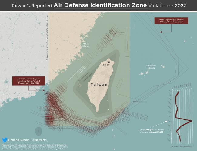 2022年大陆军机飞进台湾防空识别区航机图