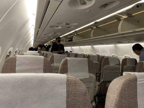 机翼伸出去不够笔挺,还略微下坠... 从我排座位看出去坡度明显哈~~ ARJ21的座位靠背的厚度和舒适度就差了一些,厚度不足,靠上去略硬,还能接受。 和新款的空客波音比起来,基本功能有,但椅背显示屏什么的就别想了。 好在是短途飞行为主,问题不大。头部的空调风口设计还合理,不过头灯的位置略有偏差:我看书的时候打开顶灯,发现照射位置是我的头顶,应该在我的身前才对啊,谁把书举在头顶上看啊...... 照射位置略偏后了一点。 这一点应该和座位布局有关,如果是78座,前后尺寸微调,应该感觉更好。 这班飞机是90座,所以全是经济舱,没看到商务舱痕迹。 乘员人数少,登机速度明显快,关闭舱门也很快。 刚登机结束就推出了,机长估计是想抢一点时间,早点进入起飞排队。 地面滑行的时候,感觉颠簸程度和波音空客相较无异常。 起飞的时候感觉推力很足,推背感很明显。当天乘客数是68人左右吧(航旅纵横上数了一下),算七成满载。 滑跑起来很轻盈,前轮抬头基本无感,离地后瞬间加速。爬升的时候角度比较大,感觉明显大于波音737或空客320。 可惜没来得及测量前排椅背下垂垫布与地面的垂直角度。 一方面和机长驾驶习惯有关系,也可以说明这款飞机的性能。 起飞离地19分30秒左右,机长就广播通知达到了巡航高度,但地面的灯火还是看的很清楚。 目测未必准,感觉高度在8000-8500米左右。 巡航途中全程平稳,一路灯火都看的很清楚,尤其是进入江苏到上海一带。 机舱内乘务员3人,一男两女。 安全讲解的时候还比较认真,服务态度也亲切温和,东航乘务的整体素质还是可以的。 本航班不提供餐点,只给一瓶矿泉水。 在飞机下降的时候,机舱内乘务员广播就有意无意的只给中文广播而没有英文了,再一听机长广播也是如此。 降落的时候,减速过程也比较明显,惯性较小。机长也不需要猛踩刹车,顺畅滑行到停机位即可,地面的灵活性突出。结果到了个远机位,好远的远机位