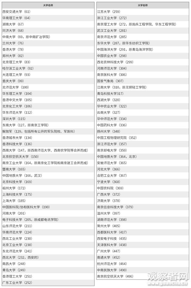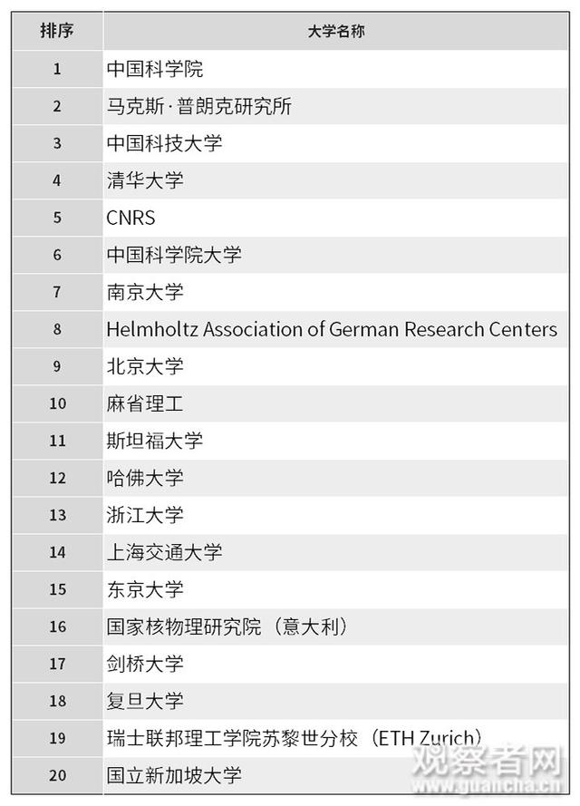 晨枫:为了增加美国优势,《自然》杂志偷偷改了这个分类【文/观察者网专栏作者 晨枫】 近日,各地纷纷放榜高考分数,接下来又是紧锣密鼓填报志愿。选一所心仪又合适的大学是每个学子的期待,往往也会在这个时候掀起关于中外大学排名和实力之争。 作为自然科学界最权威的杂志,《自然》有一个自然指数排名(https://www.nature.com/nature-index/institution-outputs/generate/all/global/all),采集世界上82个最有影响的自然科学杂志上发表的文章,对2022年2月1日至2023年1月31日之间化学、物理科学、生物科学、健康科学、地球科学五个方面的高质量论文进行排名。 与以往大家对中国大学的认知不同,这个机构和大学排名结果,可能会让很多人吃一惊。 在总分方面,前50为: ![]() 前10里有6个来自中国:中国科学院、中科大、科学院大学、北大、南大、清华,美国2个:哈佛和斯坦福,德国、法国各一个。前50里有20个来自中国,包括其他耳熟能详的名校如浙大、中山、上海交大、复旦等等。 牛津、剑桥前面排着10个中国大学。麻省理工好一点,前面“只”排了7个中国大学。加州理工(53)前面更是排了20个中国大学。换一个视点:中山大学比牛津剑桥还厉害,比加州理工厉害得多,比麻省理工只差一点。 正在舆论风口浪尖的四川大学也在前50之内,排名比大名鼎鼎的加州大学伯克利分校、哥伦比亚、康奈尔、普林斯顿、帝国理工等还要靠前。还有处在曾经风口浪尖的山东大学,也在前50里。 有意思的是,深圳的南方科技大学排名非常靠前。在国内超过武大、厦大、山大、华中理工、吉林大学、天津大学、苏州大学,在国际上超过华盛顿圣路易斯、新加坡、京都、普林斯顿、帝国理工、UCL,难能可贵。南方科大资格不老,名气不大,但成绩斐然。深圳的经济和科技高速发展,与深圳的高教和科研互相促进,相辅相成。这是面子里子都光鲜的大好事。 50名之后就不一一列举了,还有很多国际名校,如芝加哥大学(51)是费米建立第一座原子能反应堆的地方,经济学里有芝加哥学派,不过这和自然指数没关系了。德州大学奥斯汀分校(52)是美国著名的“公立藤校”,普林斯顿(44)是爱因斯坦曾经执教的地方,加州理工(53)与钱学森有不解之缘,麦吉尔大学(74)是白求恩的母校,普渡大学(119)、希伯来大学(135)等也都是名校。 50名之后的中国大学列举一下,谁叫我们对中国有偏心呢: ![]() 自然指数500强把中国的985、211、一本都包全了?肯定没有,总分入围的中国院校有113个,刚过211的一半。但好多二本院校确实也入围了,相信很多人都会欣慰地找到自己母校的名字。老实承认,自然指数给的是英文名,好几个大学要上网查才能确认中文名,查到中文名有时都要查查校史,才能对得上谁是谁。 好玩的是,中国有一大堆科技大学、理工大学、工业大学,英文名称非常容易混淆,北京、哈尔滨的“问题”最大,一不小心就中招。这也说明中国高教对科技的倾斜,这是中国经济升级转型的科技和人才基础。 入围的中国大学分布也相对均匀,形成完整的梯队,而不是像人们印象中的资源都集中到北清复交了。好些入围院校出了本地未必是名校,但也用自己的努力为中国科技光荣榜添上了华丽的一笔。 应该说,大量中国科研成果来自海归科学家。自然指数没有指出的是,500强里中国之外的机构和院校里,入围的论文很可能也有大量华裔科学家的贡献。他们在世界各地为人类的科学发展做出贡献,但要是因为美欧的“科技排华”而被迫回到中国,不仅损害美欧的科技实力,也进一步壮大了中国的科技实力。这是美欧“科技排华”难以为继的重要原因。 自然指数前500厉害吗?厉害。在某种意义上,这可以看作世界名校500强。当然,也必须看到,这是偏科的,工程技术方面没有列入,毕竟是《自然》杂志主持的,理论和基础科学为主。在工程技术方面,中国的成就不缺论文数量支持,而是更从大量涌现的新技术、新产品、新项目上体现出来,各种大国重器就不用多说了。 在基础科学方面,自然指数排名也说明:与人们普遍指责的“中国基础科学还是太落后”不一样,中国在基础科学方面不仅下大力气,而且正在做出大成就。或许学术界有唯论文主义的毛病,但不可否认的是,也确实产出大批有影响的高质量论文。中国工程技术的发展正是以中国基础科学的发展为后盾的。 横向比较的话,俄罗斯科学院排名72,与俄罗斯国力下滑的现实很相符,但与俄罗斯科技的光荣历史很不符合。大名鼎鼎的莫斯科大学排名392,广西大学、济南大学、南京信息科技大学和温州大学、湖南师范大学、常州大学把莫斯科大学夹在中间。不消说,莫斯科大学气派的主楼绝对碾压这些中国大学,但从自然指数而言,这些中国大学“紧密拥抱”莫斯科大学了。 台湾呢?台大(184)名气很大,被上海科技大学和上海大学紧密拥抱。台湾中山科学院(276)被浙江工大、南京理工和武汉工大、南京师大紧密拥抱。原来的炮兵工程学院和研发“雄风”导弹的台湾中国科学院紧挨着,倒是门当户对。台湾清华(386)与温州大学排名相近,台湾交大(444)与广州大学排名相近,所以不存在“清华精华在台湾”、“交大精华在台湾”的事。 韩国排名最前的国立首尔大学排名60,西安交大紧挨着,不错了。名气很大的韩国先进科技研究院(KAIST)排名80,在香港大学和郑州大学之间。 大名鼎鼎的印度理工学